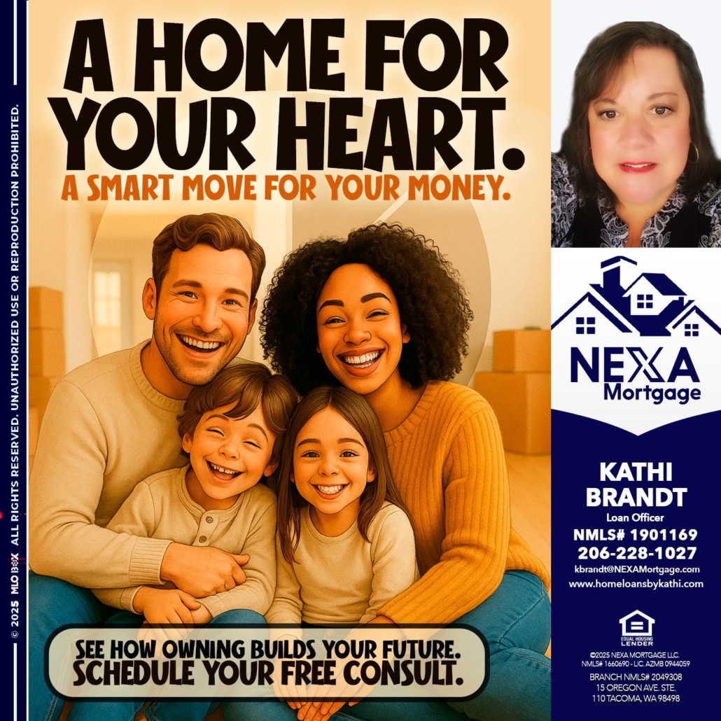 Hi, my name is Kathi Brandt. I’m a Loan Officer with NEXA Mortgage LLC., offering personalized mortgage solutions, fast customized quotes, great rates and service with integrity.