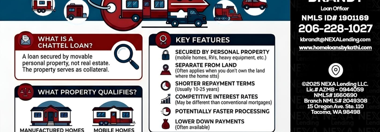 Hi, my name is Kathi Brandt. I’m a Loan Officer offering personalized mortgage solutions, fast customized quotes, great rates and service with integrity. If you’re interested in learning more about the Chattel loan or any other, just let me know and I’ll walk you through your options.