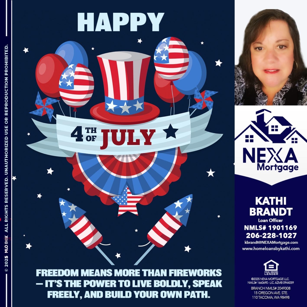 Hi, my name is Kathi Brandt. I’m a Loan Officer with NEXA Mortgage LLC., offering personalized mortgage solutions, fast customized quotes, great rates and service with integrity.