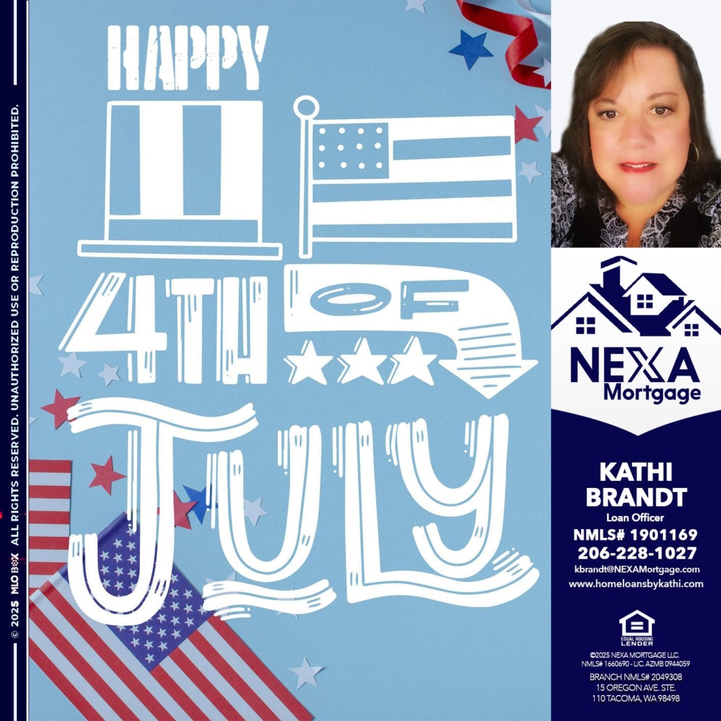 happy 4th of july - Kathi Brandt -Mortgage Loan OriginatorHi, my name is Kathi Brandt. I’m a Loan Officer with NEXA Mortgage LLC., offering personalized mortgage solutions, fast customized quotes, great rates and service with integrity.