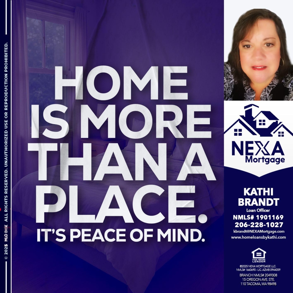HOME IS MORE - Kathi Brandt -Mortgage Loan OriginatorHi, my name is Kathi Brandt. I’m a Loan Officer with NEXA Mortgage LLC., offering personalized mortgage solutions, fast customized quotes, great rates and service with integrity.