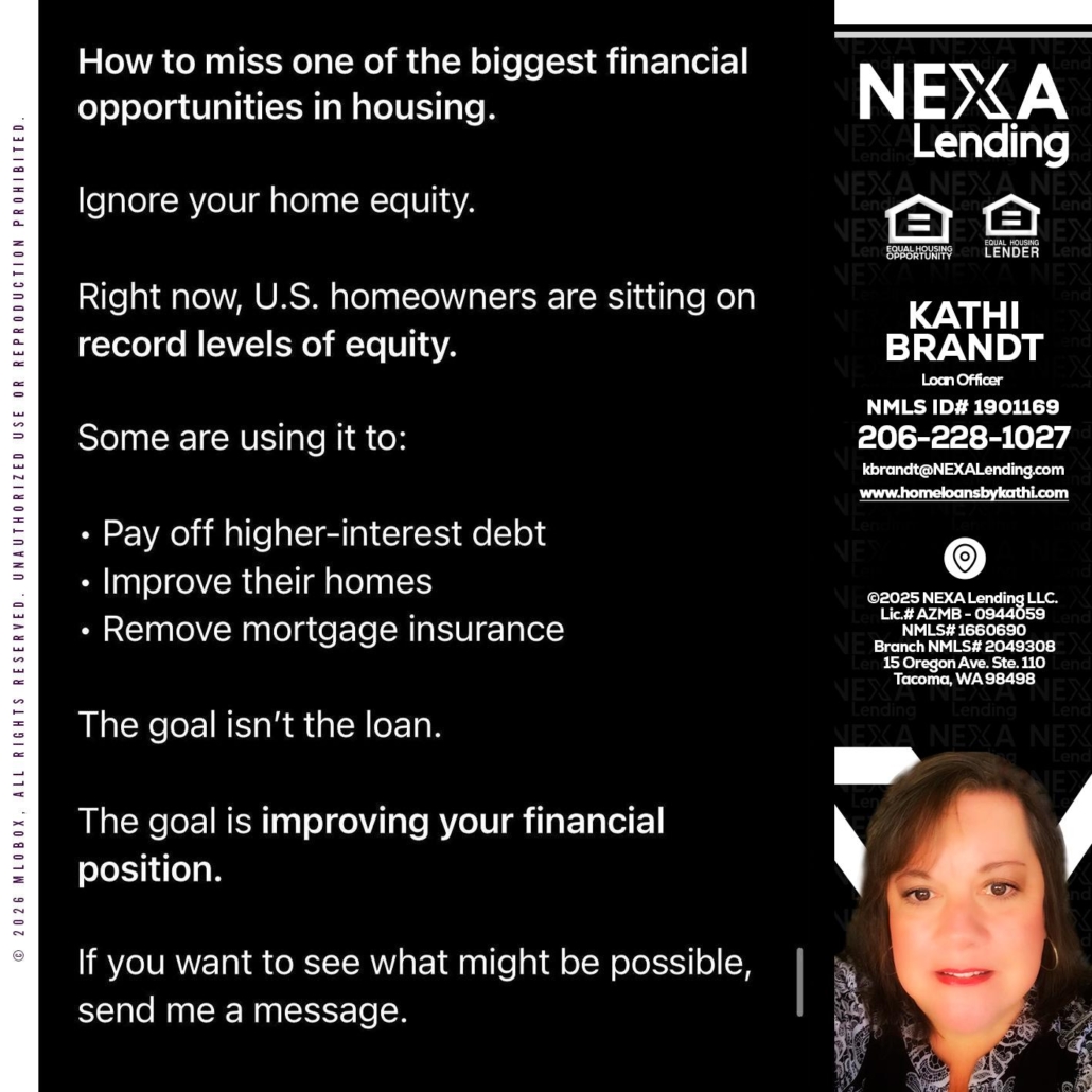 Hi, my name is Kathi Brandt. I’m a Loan Officer with NEXA Lending LLC., offering personalized mortgage solutions, fast customized quotes, great rates and service with integrity.