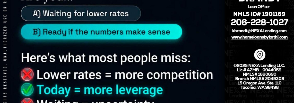 Hi, my name is Kathi Brandt. I’m a Loan Officer with NEXA Lending LLC., offering personalized mortgage solutions, fast customized quotes, great rates and service with integrity.