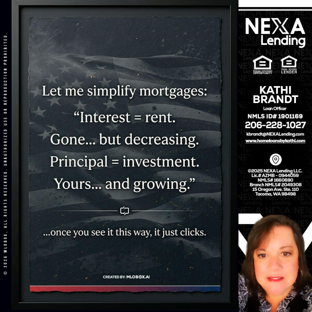 Hi, my name is Kathi Brandt. I’m a Loan Officer with NEXA Lending LLC., offering personalized mortgage solutions, fast customized quotes, great rates and service with integrity.