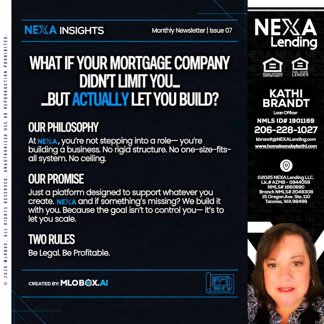 Hi, my name is Kathi Brandt. I’m a Loan Officer with NEXA Lending LLC., offering personalized mortgage solutions, fast customized quotes, great rates and service with integrity.
