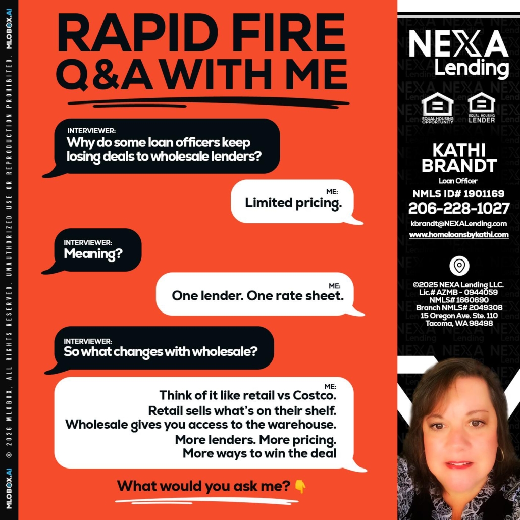 Hi, my name is Kathi Brandt. I’m a Loan Officer with NEXA Lending LLC., offering personalized mortgage solutions, fast customized quotes, great rates and service with integrity.