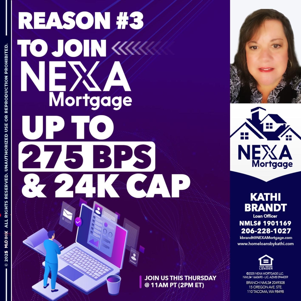 Hi, my name is Kathi Brandt. I’m a Loan Officer with NEXA Mortgage LLC., offering personalized mortgage solutions, fast customized quotes, great rates and service with integrity.