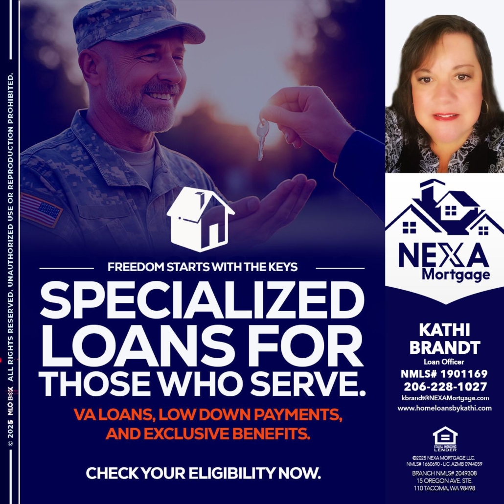 Hi, my name is Kathi Brandt. I’m a Loan Officer with NEXA Mortgage LLC., offering personalized mortgage solutions, fast customized quotes, great rates and service with integrity.