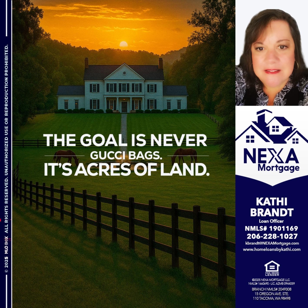 Hi, my name is Kathi Brandt. I’m a Loan Officer with NEXA Mortgage LLC., offering personalized mortgage solutions, fast customized quotes, great rates and service with integrity.