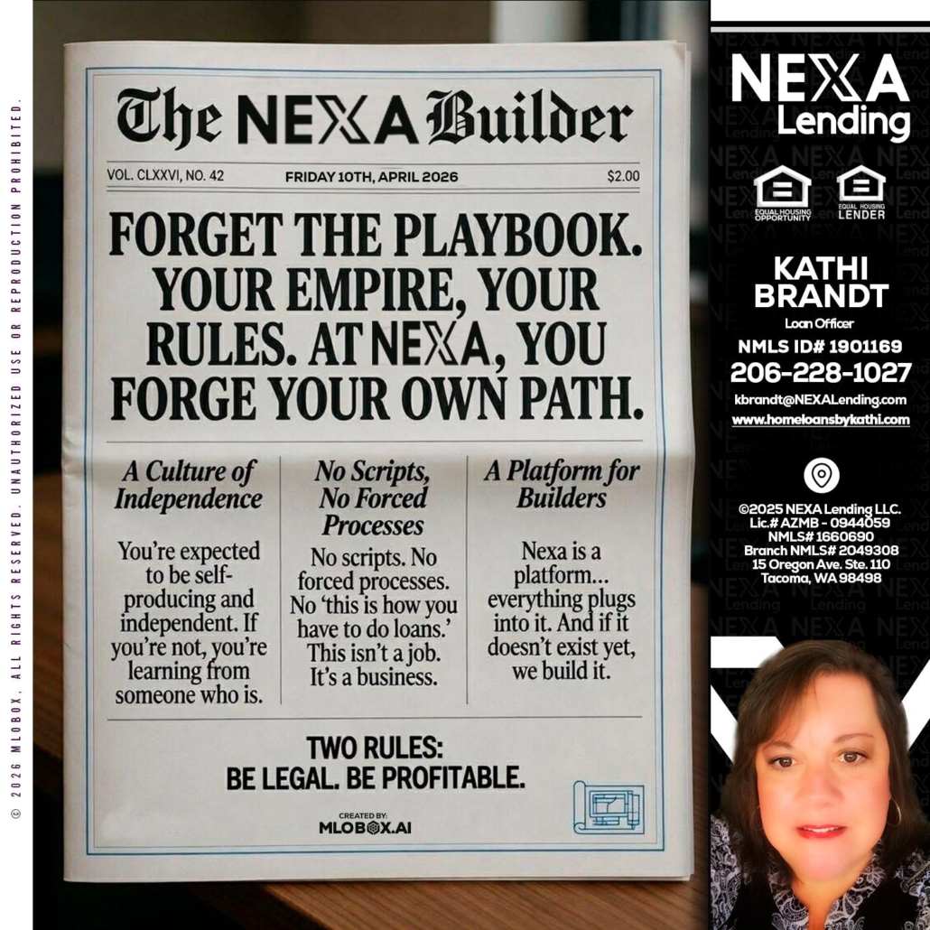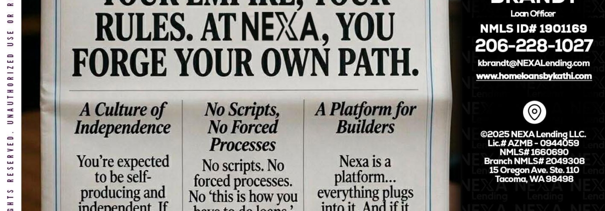 Hi, my name is Kathi Brandt. I’m a Loan Officer with NEXA Lending LLC., offering personalized mortgage solutions, fast customized quotes, great rates and service with integrity.