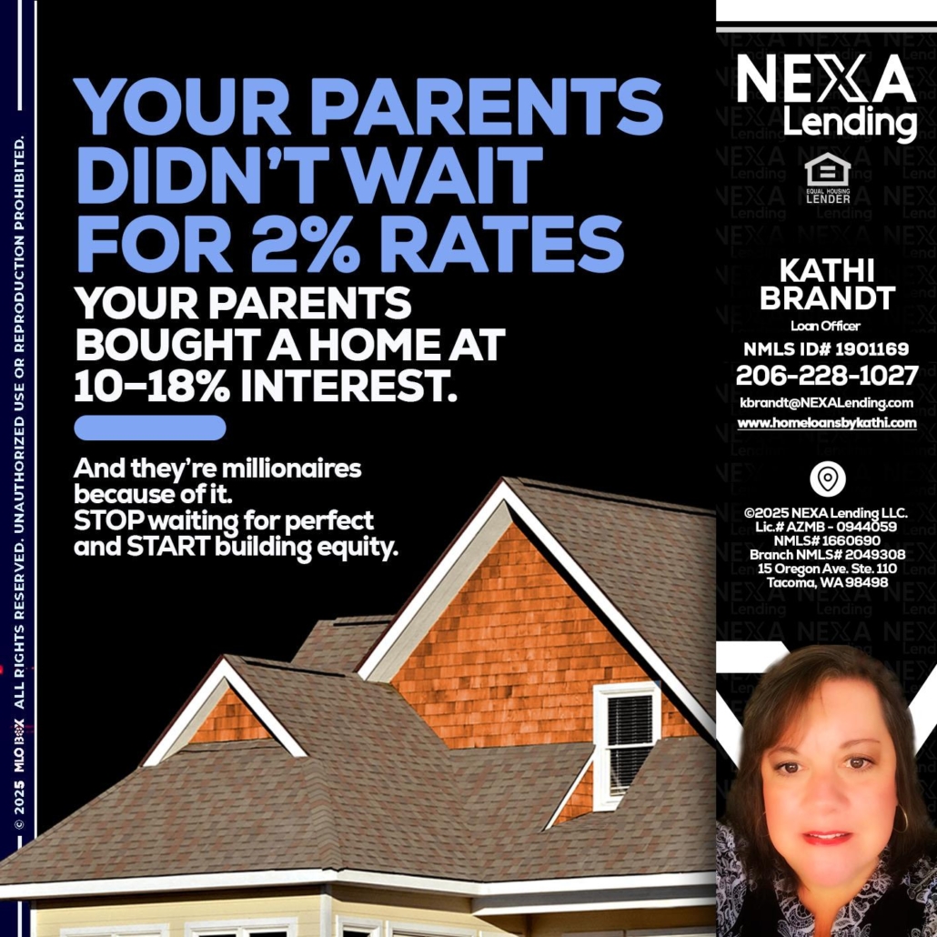 Hi, my name is Kathi Brandt. I’m a Loan Officer with NEXA Mortgage LLC., offering personalized mortgage solutions, fast customized quotes, great rates and service with integrity.